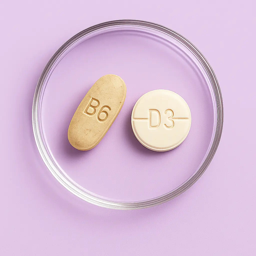 La vitamina B6 regula la actividad hormonal y ayuda a reducir el cansancio y los cambios de humor, lo que disminuye la tendencia a comer por estrés. La vitamina D3, por su parte, apoya el metabolismo de las grasas y contribuye a mantener niveles de energía estables y un estado de ánimo positivo.